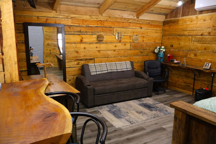 Staying at Blackburn Acres means more than just a roof over your head. Each cabin is climate-controlled with full heating and air conditioning, so you're comfortable no matter the season. Inside you'll find a fully equipped kitchenette, a private bathroom with shower, smart tvs and complimentary WiFi everything you need to settle in and feel right at home.