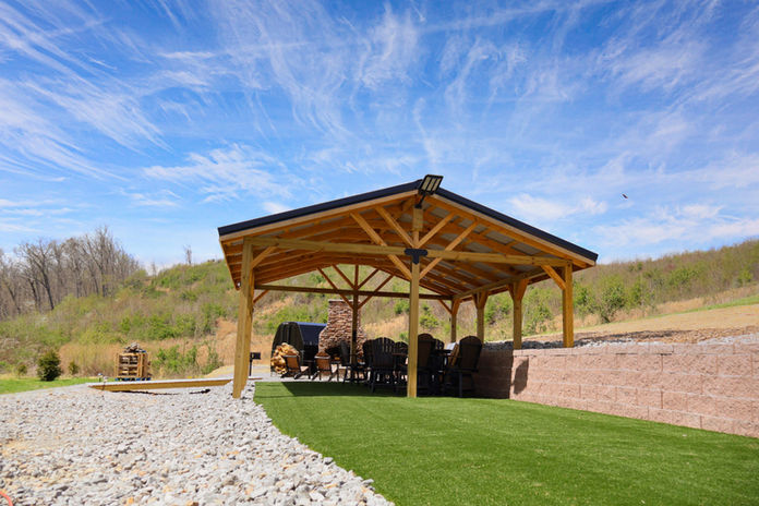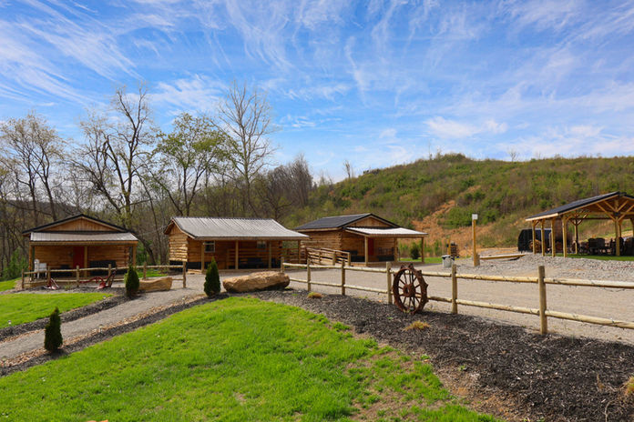 Step outside and the fun continues. Cabin guests and event attendees alike have access to our private hiking trails winding through the property — 120 acres of Southern Ohio scenery waiting to be explored at your own pace. When you're ready to gather, head to the shared turfed games area for some friendly competition, or pull up a chair at the outdoor shelter and let the outdoor fire place do what it does best, bring people together.
