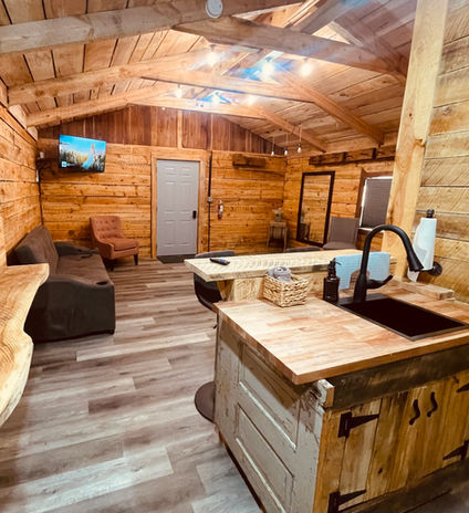 Every groom deserves a great morning too. Sawyer's Cabin is where the guys gather, ties get straightened, toasts get made early, and the nerves turn into excitement. Rugged, comfortable, and full of good energy, it's the perfect place for the groom and his crew to get ready, relax, and gear up for the best day of their lives.